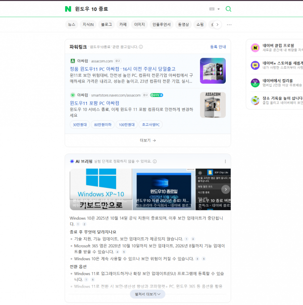 네이버 검색결과 윈도우10 종료 입니다 링크로 안보시니 야에 박제해서 이미지 로 보여드립니다