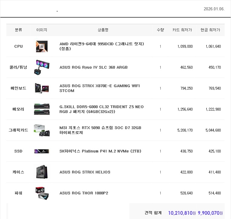 2026년 게임 작업 한방 1000만원대 사양!!!