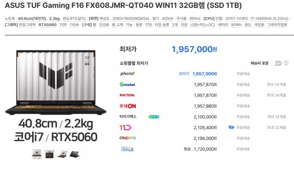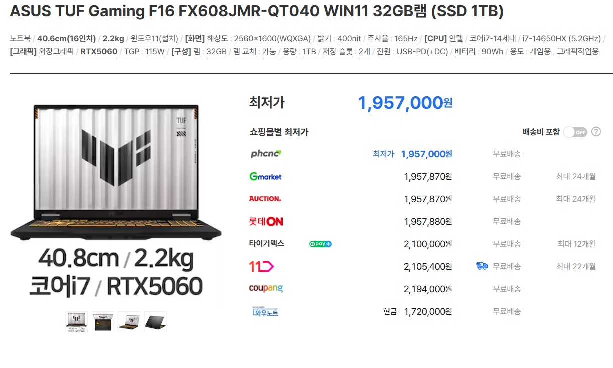 2026 노트북 추천 asus 터프 14세대 5060 32기가 1테라
