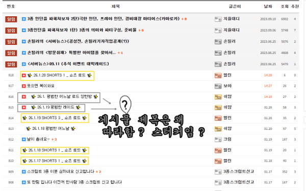로드서버 게시물 양식은 따로 정해져있는건가요?