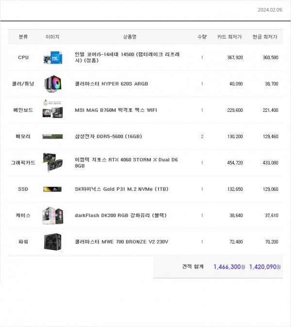 2월9일 인텔 140만원대 견적