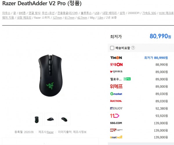 레이저사의 유무선마우스 데스에더 V2 PRO입니다