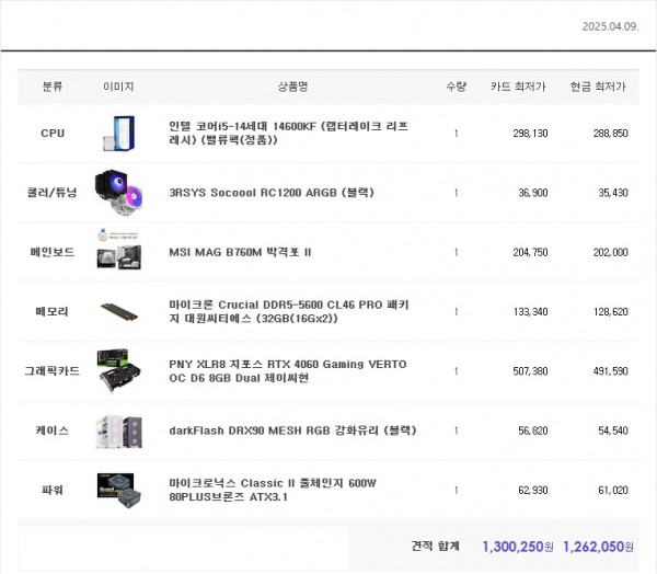 가을이면님 3번쨰견적 인텔130만원대~~(14600kf)로 상향