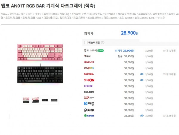 앱코 AN01T RGB BAR 기계식 다크그레이