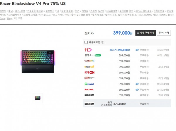 Razer Blackwidow V4 Pro 75% US 399000원