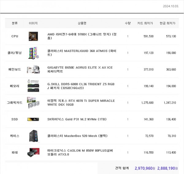10월 AMD 290만원대 추천견적