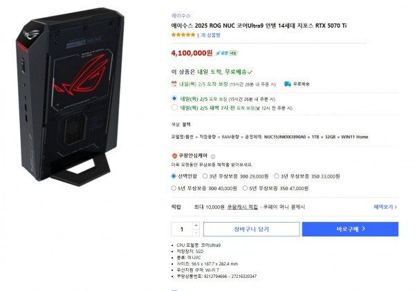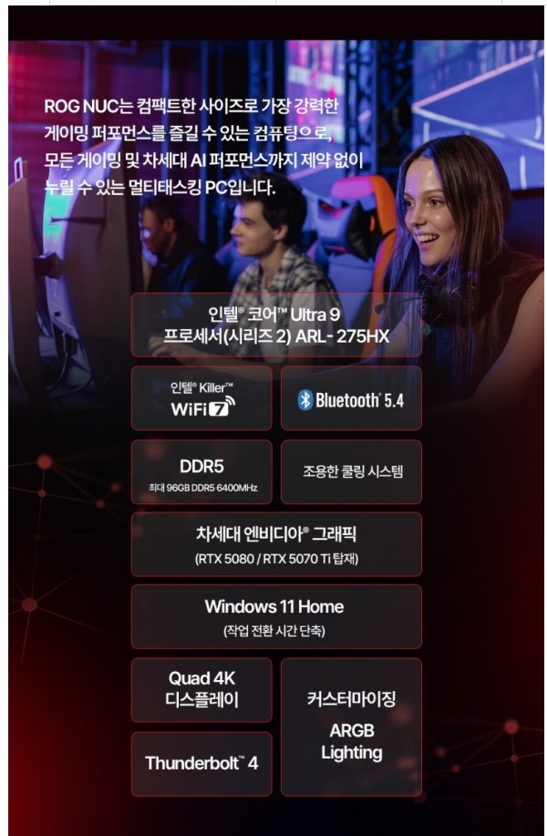 에이수스 2025 ROG NUC 코어Ultra9 인텔 14세대 지포스 RTX 5070 Ti